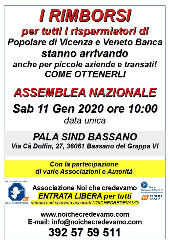 ARRIVA IL 30% SENZA LIMITI DI REDDITO PER TUTTE LE PERSONE FISICHE AZIONIATE DELLE DUE BANCHE VENETE NOVITÀ IMPORTANTI